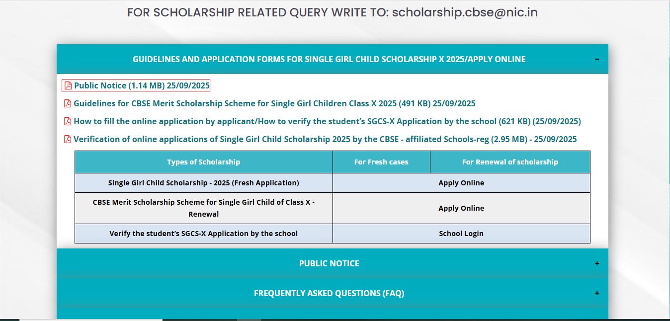 सीबीएसई मेरिट स्कॉलरशिप फॉर सिंगल गर्ल चाइल्ड 2025-26 – महत्वपूर्ण लिंक