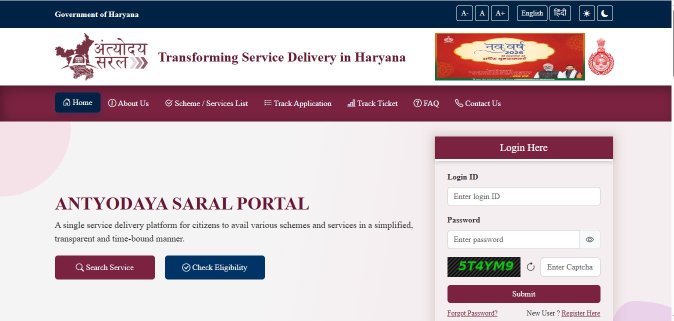 1. सबसे पहले आवेदक को अंत्योदय-सरल पोर्टल पर जाना होगा।