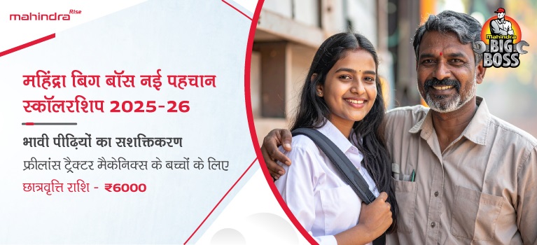 महिंद्रा बिग बॉस नई पहचान स्कॉलरशिप 2025-26 फ्रीलांस (स्वतंत्र) ट्रैक्टर मैकेनिक्स के बच्चों को उनके शैक्षणिक सफर में वित्तीय सहायता प्रदान कर उन्हें सशक्त बनाने के लिए समर्पित है। इसका प्रमुख उद्देश्य फ्रीलांस ट्रैक्टर मैकेनिकों के बच्चों को उनकी शिक्षा जारी रखने में आर्थिक सहायता प्रदान कर उन्हें सशक्त बनाना है। यह छात्रवृत्ति कार्यक्रम सभी लिंग, वर्ग एवं शैक्षणिक पृष्ठभूमियों के छात्रों के लिए उपलब्ध है, जो समान उपलब्ध अवसर के माध्यम से उन्नति और शिक्षा में निरंतरता को प्रोत्साहित करता है। इसके अंतर्गत प्रत्येक पात्र छात्र को ₹6,000 की छात्रवृत्ति राशि प्रदान की जाएगी।