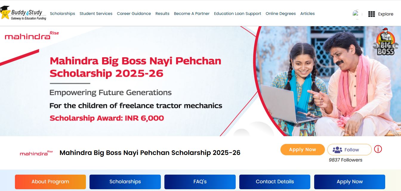 Mahindra Big Boss Nayi Pehchan Scholarship 2025-26 – संक्षिप्त विवरण