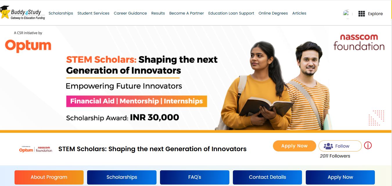 STEM स्कॉलर्स – शेपिंग द नेक्स्ट जनरेशन ऑफ इनोवेटर्स, नैसकॉम फ़ाउंडेशन के सहयोग से ऑप्टम की कॉरपोरेट सामाजिक उत्तरदायित्व (सीएसआर) पहल के तहत छात्रों को दिया जाने वाला एक अवसर है। इसका उद्देश्य सामाजिक रूप से वंचित तथा आर्थिक रूप से कमजोर पृष्ठभूमि के छात्रों को STEM (विज्ञान, प्रौद्योगिकी, अभियांत्रिकी और गणित) शिक्षा प्राप्त करने में सक्षम बनाना है। इस छात्रवृत्ति के तहत शिक्षण शुल्क, आवास/रहन-सहन व्यय और अध्ययन सामग्री को कवर करते हुए व्यापक वित्तीय सहायता प्रदान की जाती है। साथ ही, यह योग्यता-आधारित चयन के माध्यम से शैक्षणिक उत्कृष्टता को प्रोत्साहित करता है।