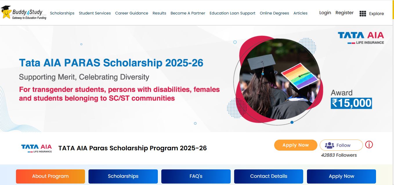 | स्कॉलरशिप का नाम | टाटा एआईए पारस स्कॉलरशिप प्रोग्राम 2025-26 |