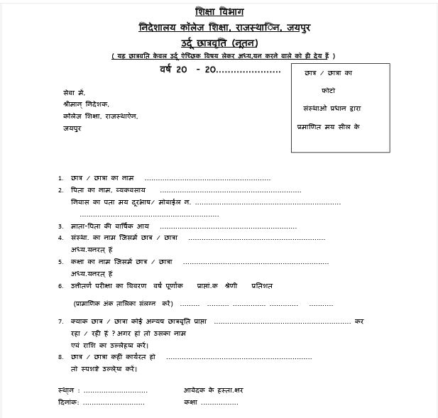 राजस्थान उर्दू छात्रवृत्ति – आवेदन प्रक्रिया